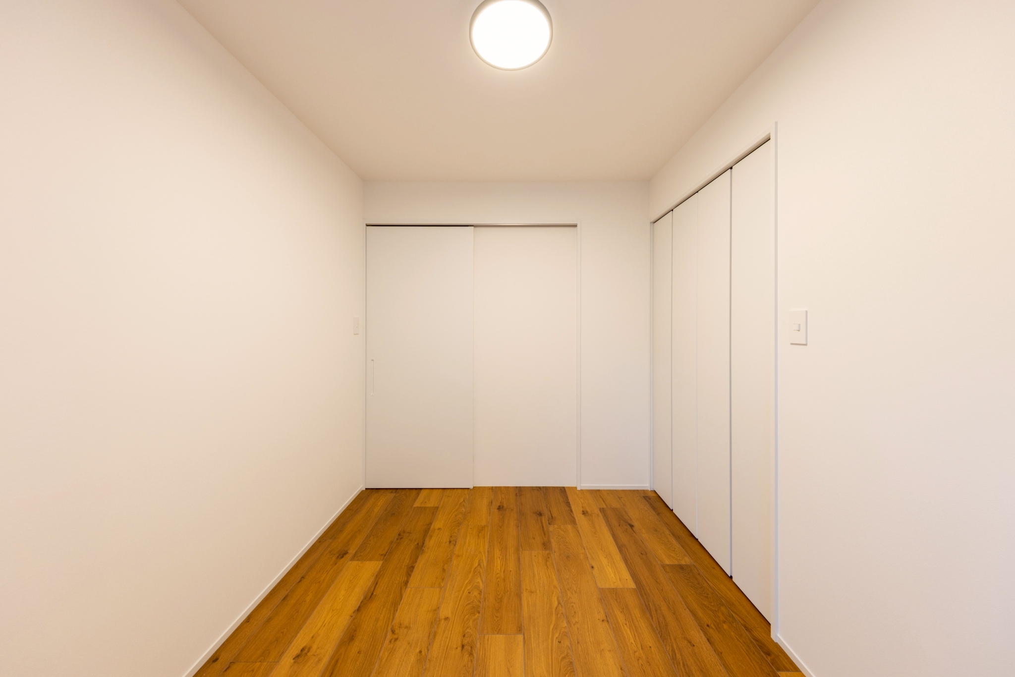 プライベート空間である4つの洋室には、全室に大容量のウォークインクローゼットや壁面収納あり、収納量が豊富です。エアコンも3室に設置できるように配管を整備しております。