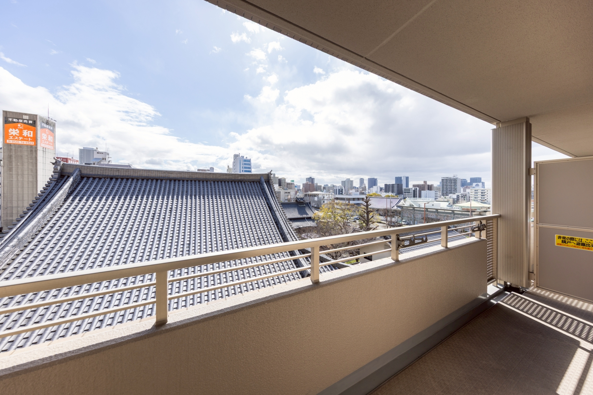 上町台地に位置するため眺望の抜けが良いバルコニー。